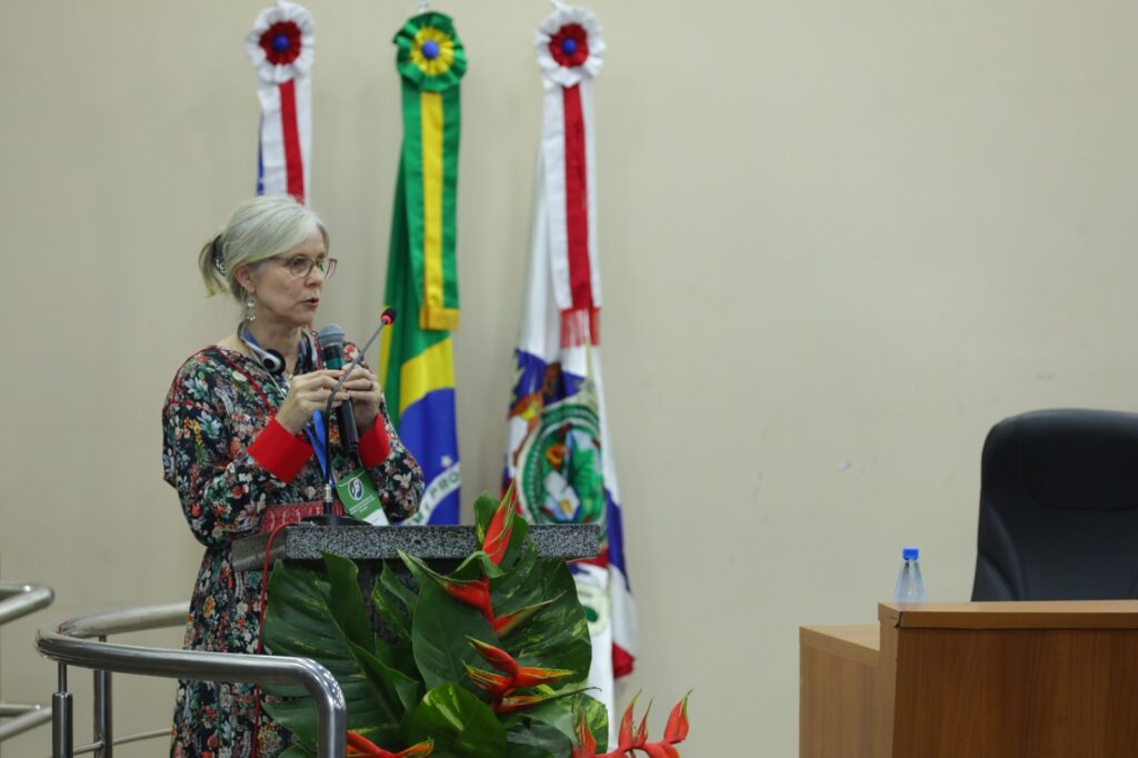 A pesquisadora Hanna Guttorm, da Universidade de Helsinque, também participou com a palestra “Indigenização da Academia e das discussões de Sustentabilidade”, ressaltando a importância da escuta e da valorização das culturas originárias.
