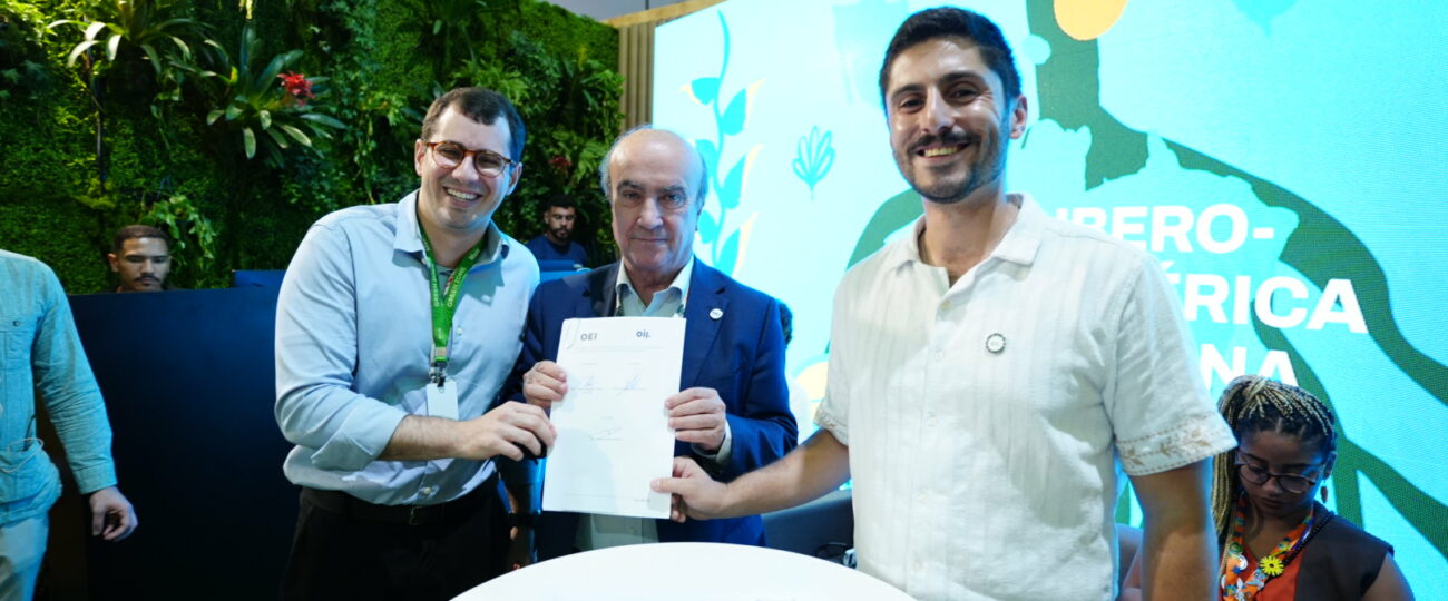 O acordo foi assinado pelo secretário-geral da OEI, Mariano Jabonero, e pelo secretário-geral da OIJ, Alexandre Pupo, durante o encontro “Juventude da América Latina: educação, cultura e justiça socioambiental”, realizado no estande “Iberoamérica Viva” da OEI na COP30. Participaram ainda Rodrigo Rossi, diretor da OEI no Brasil; Marcele Oliveira, jovem campeã do clima da COP30; e Guilherme Neves, diretor da Secretaria Nacional de Juventude.