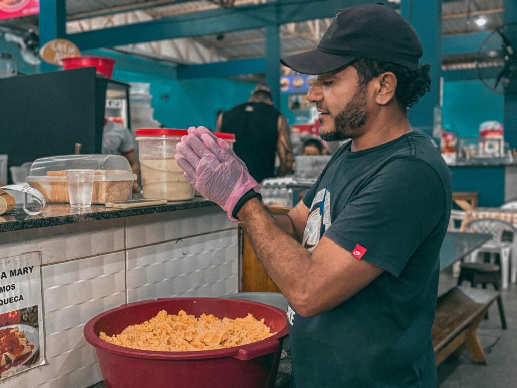 No Mercado do Bosque, em Rio Branco, o quibe de macaxeira é destaque absoluto. O salgadeiro Elildo Ferreira, com 27 anos de experiência, explica o processo: “Você higieniza bem a raiz, cozinha, amassa, tempera com sal, tira os talinhos e recheia com carne moída. Depois é só fritar em óleo bem quente.” Segundo ele, os quibes de macaxeira e de arroz são os mais vendidos no local.