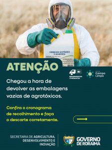 O governo de Roraima iniciou uma série de ações voltadas à destinação correta de embalagens de defensivos agrícolas, com foco na redução de riscos ambientais e à saúde no campo. A iniciativa, conduzida pela Secretaria de Agricultura, Desenvolvimento e Inovação (Seadi), ocorre em parceria com o Instituto Nacional de Processamento de Embalagens Vazias (InpEV) e integra o Sistema Campo Limpo.