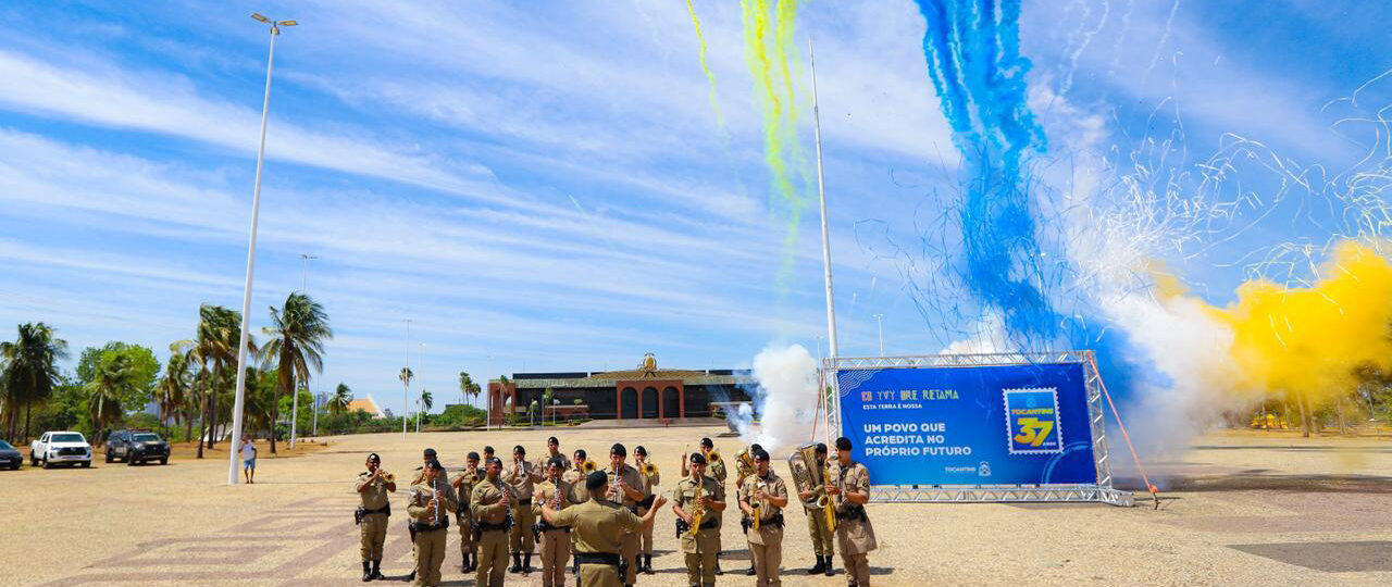 O Governo do Estado comemorou no domingo (5) os 37 anos de criação do Tocantins na Pedra Fundamental, localizada na Praça dos Girassóis, em Palmas. A cerimônia reuniu autoridades estaduais e municipais, lideranças políticas, representantes da sociedade civil e centenas de convidados.
